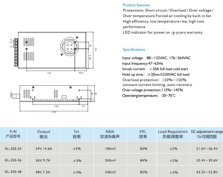 保護功能:過電壓保護/過電流保護/過溫保護內(nèi)置風扇冷卻