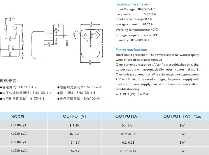 短路保護(hù): 電源適配器在短路解除時(shí)能正常工作恢復(fù)